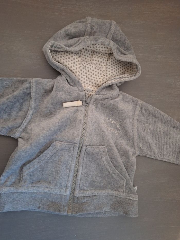 GARÇON 1 MOIS N°492 -veste zippé / Capuche gris clair , velours 80% coton , 20% polyester Taille 1 mois 1€ #kelly_garçon1mois