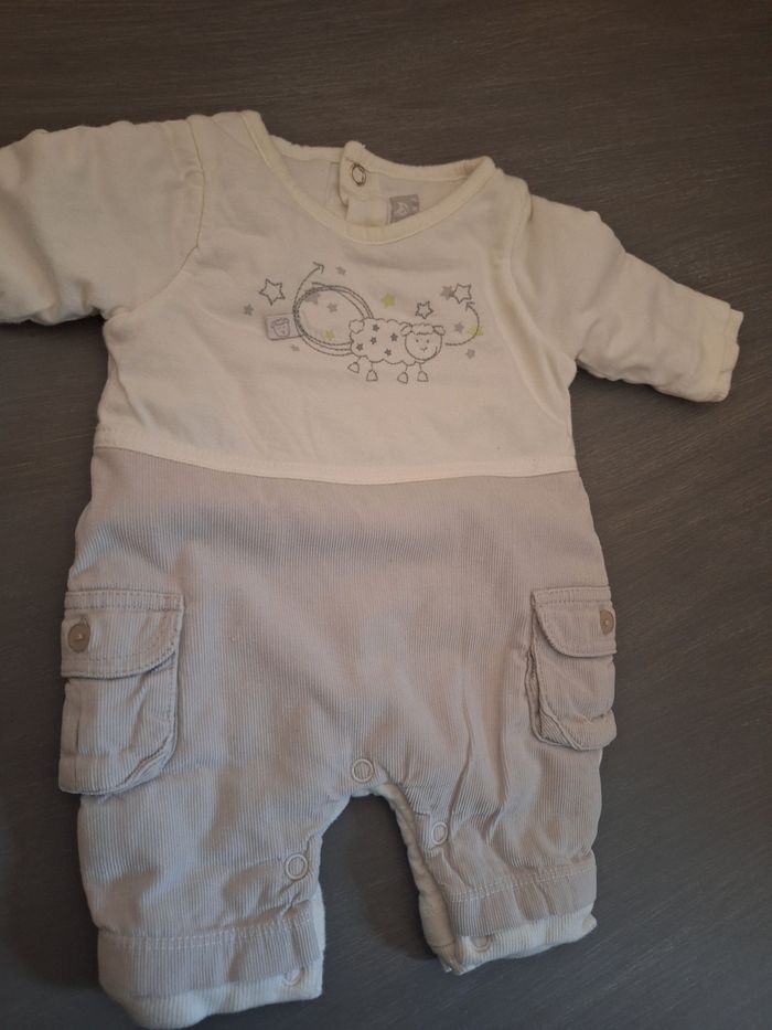 GARÇON 1 MOIS N°493 Salopette hiver Blanc / gris Pression au dos / entre jambes Moleton 100% coton Taille 1 mois Canari baby 3€ #kelly_garçon1mois