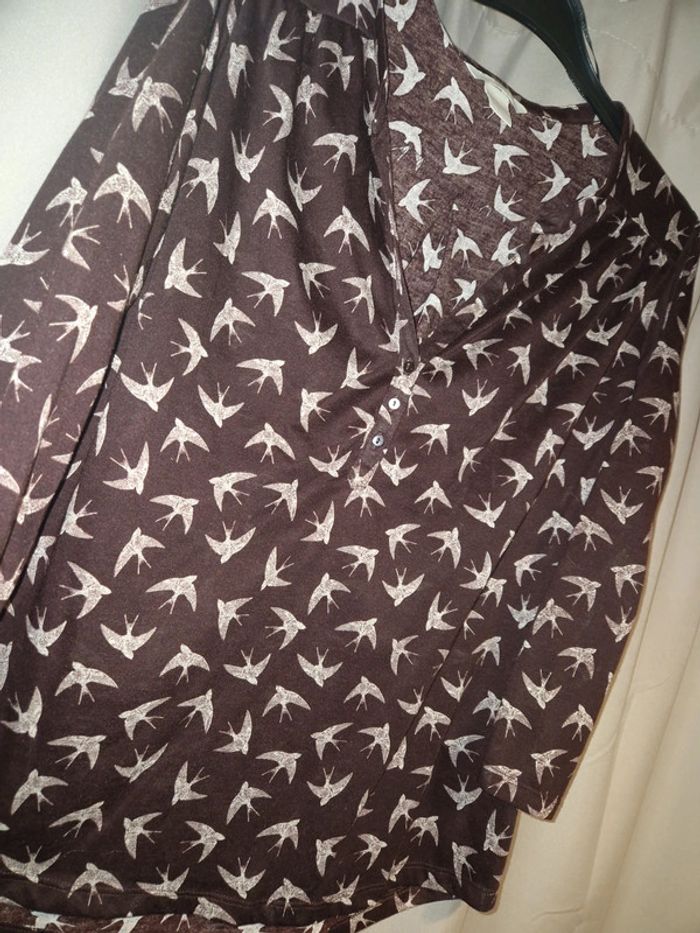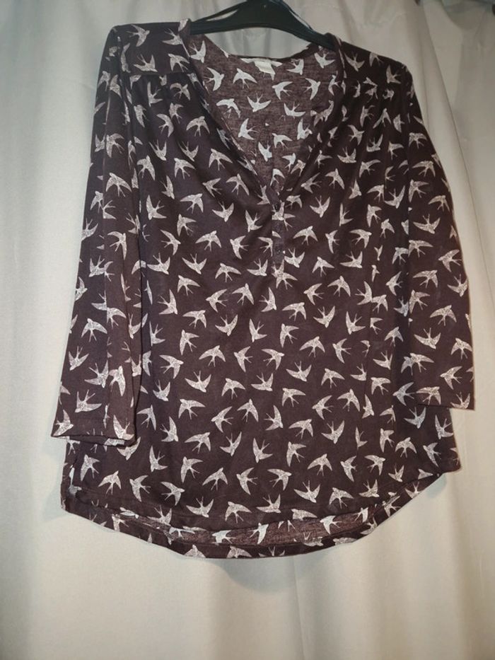 Jolie tunique / blouse bordeaux avec hirondelles Facile à porter. Autant avec une jupe qu'un slim... Très peu portée M mais davantage 40 N'hésitez pas à consulter l'ensemble de mon dressing, beaucoup de choses 😉 #blouse #tunique #manche3quarts #Bordeaux #oiseaux #hirondelles #h&m