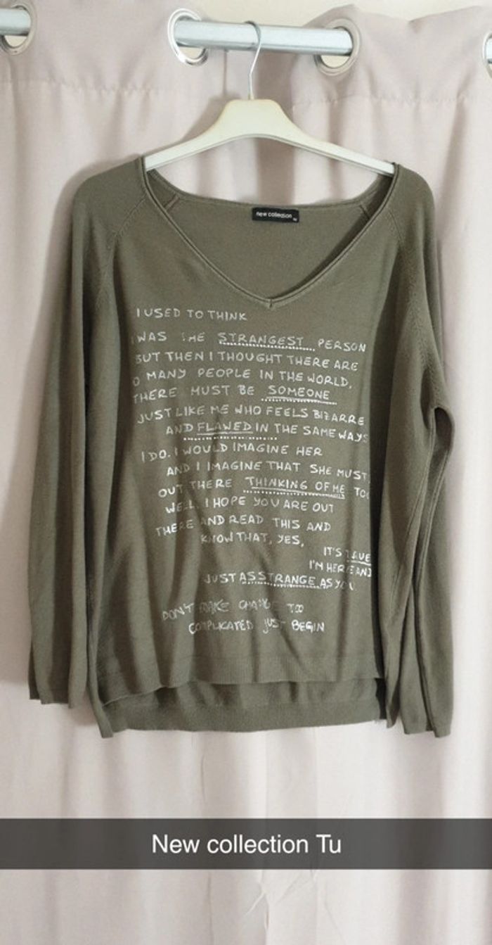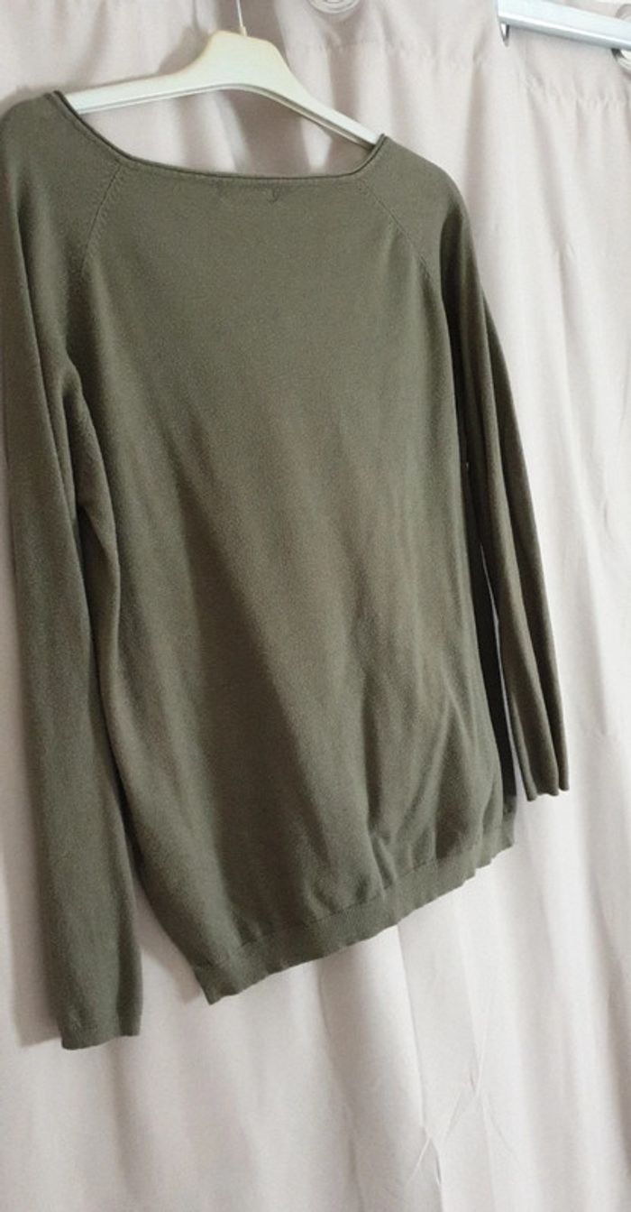 Joli pull confortable Indémodable kaki Porté peu de fois Taille unique mais plutôt L Tout dépend comment on souhaite le porter