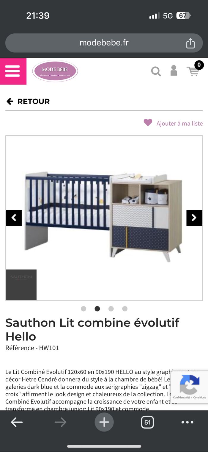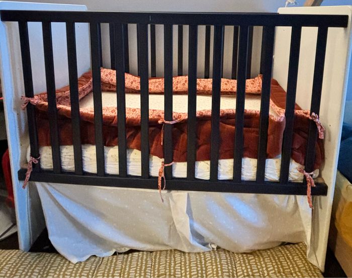 Lit combiné bébé Sauthon 60x120 Modèle Hello Avec commode-table à langer Barres transversales incluses pour l’évolution en lit enfant 90x190 (sommier et matelas non inclus) Tiroir sous lit non inclus Matelas non inclus Jupe de lit incluse En très bon état (Prix à l’achat 513€) Remise en main propre uniquement, à venir récupérer (île de France, val de marne ou Seine saint Denis)