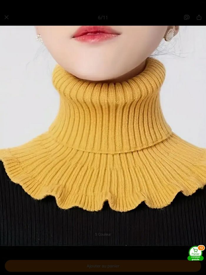 Faux col tricoté   avec garniture à volants  coupé- vent couvre - cou chaud  neuf