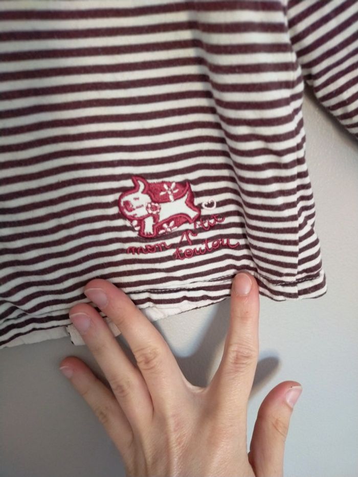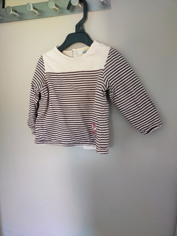 Haut bébé épais manches longues rayé marron et beige Sergent Major 18 mois Ouverture sur l'arrière #ecila72_bbg18mois N'hésitez pas à faire des lots, je vous ferais un prix
