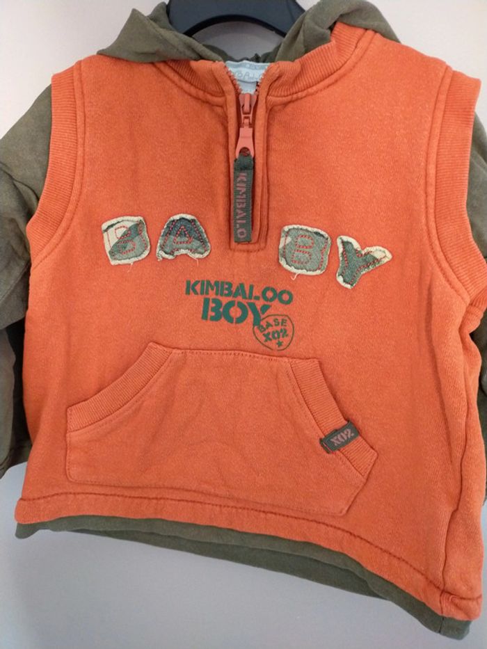 Sweat fin à capuche kaki et orange Kimbaloo 18 mois Légères bouloches #ecila72_bbg18mois N'hésitez pas à faire des lots, je vous ferais un prix