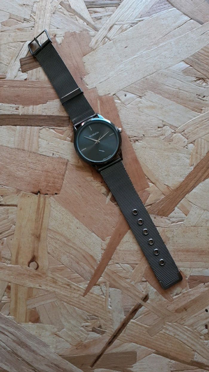 Montre femme grise argentée avec bracelet souple, jamais portée