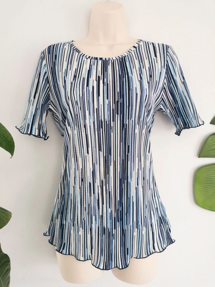 Blouse plissée rayures bleu saphir Damart Taille 34/36 - photo numéro 1