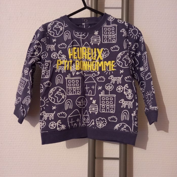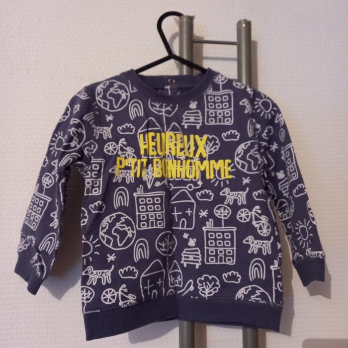 Superbe haut sweat bébé garçon Dis bouton pression Bel Imprimé Coloris bleu blanc Taille 24 mois