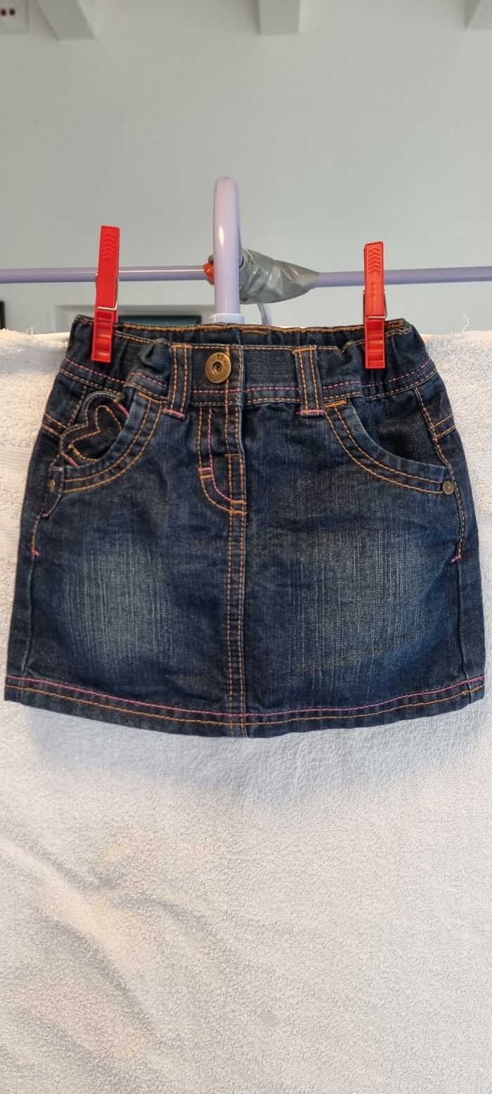 Jupe en jean bleu brodé de coeurs. La jupe se ferme par 1 pression devant. Taille réglable. Excellent état D'autres vêtements disponibles et autres tailles, dans le dressing ou pas encore en ligne. N'hésitez pas à me demander ☺️ A retirer sur Vannes et alentours ou envoi rapide et soigné. Taille 18 mois, Kitchoun Prix 2 €