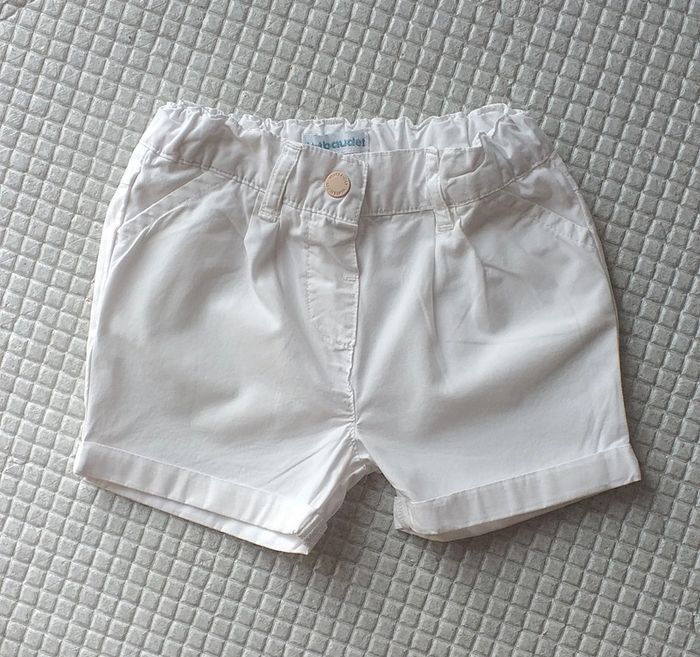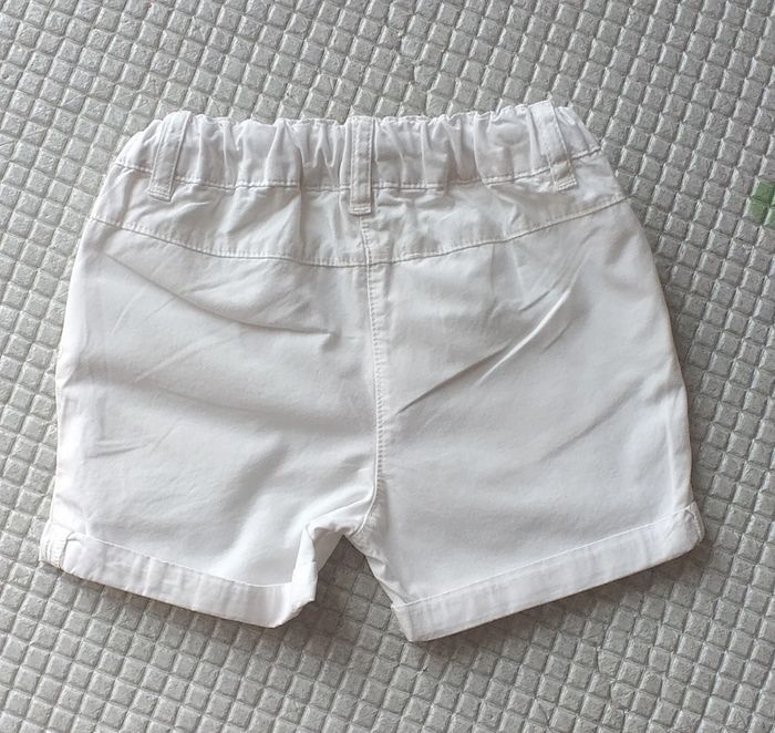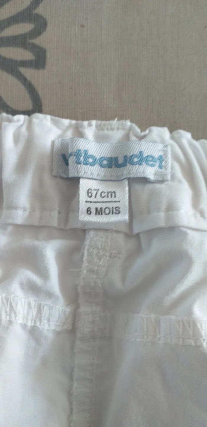 Porté quelques fois. Short qui se ferme par boutons pressions. Elastique de serrage à l'intérieur que d'un côté. Petit poches devant. Taille 6 mois.