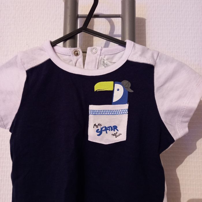 Tee-shirt bébé Taille 6 mois Blanc bleu Imprimé