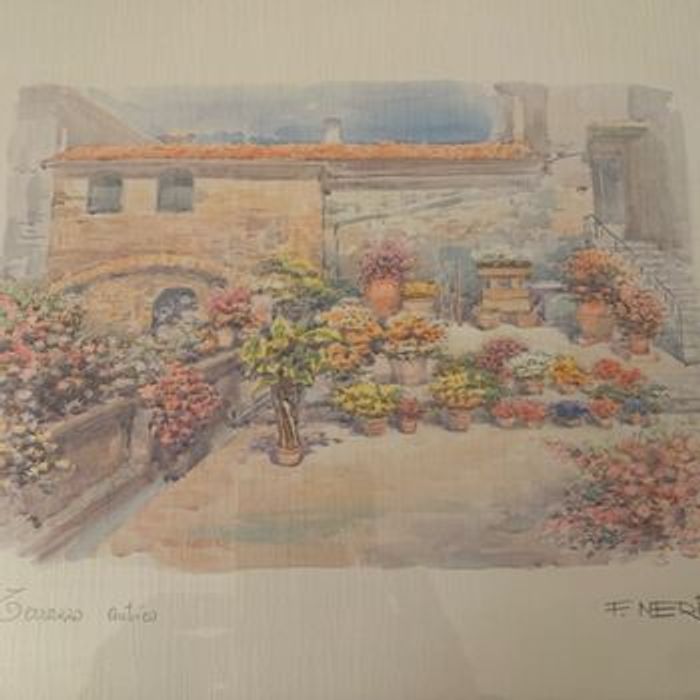 Vends cadre avec peinture aquarelle, paysage de F. Neri.