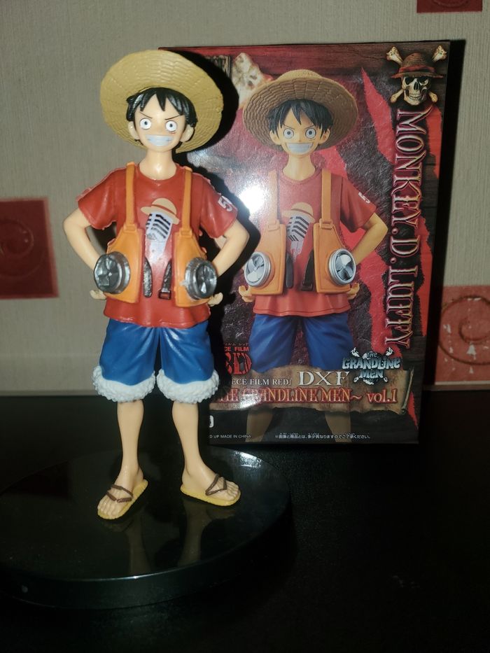 Figurine one piece luffy 🤩🤩 Etat: figurine Neuf avec boîte utilisez juste pour photo. Dimension: figurine socle hauteurs 16cm, largeur 12cm, boîte hauteur 19cm,largeur 12cm. Emballage soigné 📦 envoi rapide 🚚 Pour plus renseignements ou de photos n'hésitez pas réponds rapidement 👌