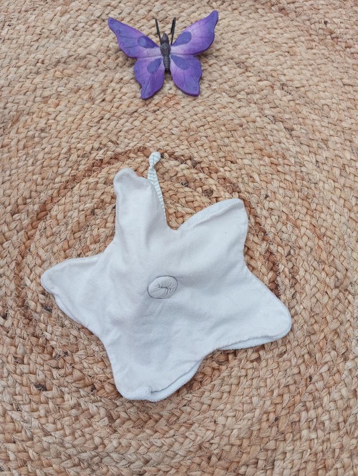 Nicotoy Simba Kiabi Doudou semi plat Forme étoiles Lapin Gris Broderie My little toys Bonnet Étiquette de composition absente #douceur_nicotoysimbakiabi C28