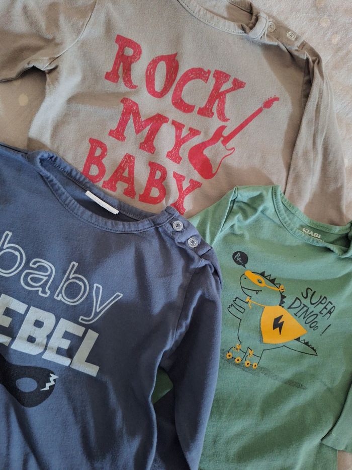 GARÇON 9 MOIS N°553 lot de 3 maillots Longue manche Bouton épaule Vert / gris / bleu Taille 9 mois Kiabi 2€ #kelly_garçon9mois