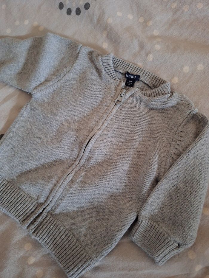 GARÇON 9 MOIS N°554 gilet gris clair 100% coton Taille 9 mois Kiabi 2,50€ #kelly_garçon9mois
