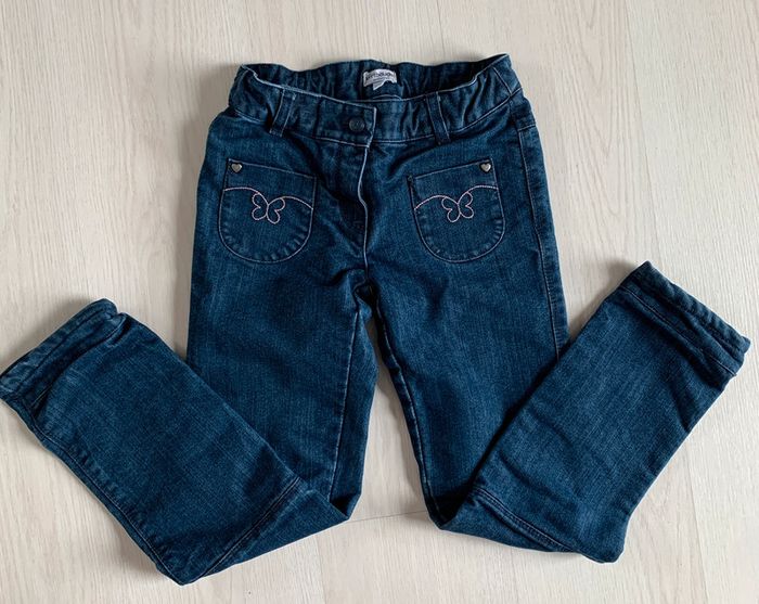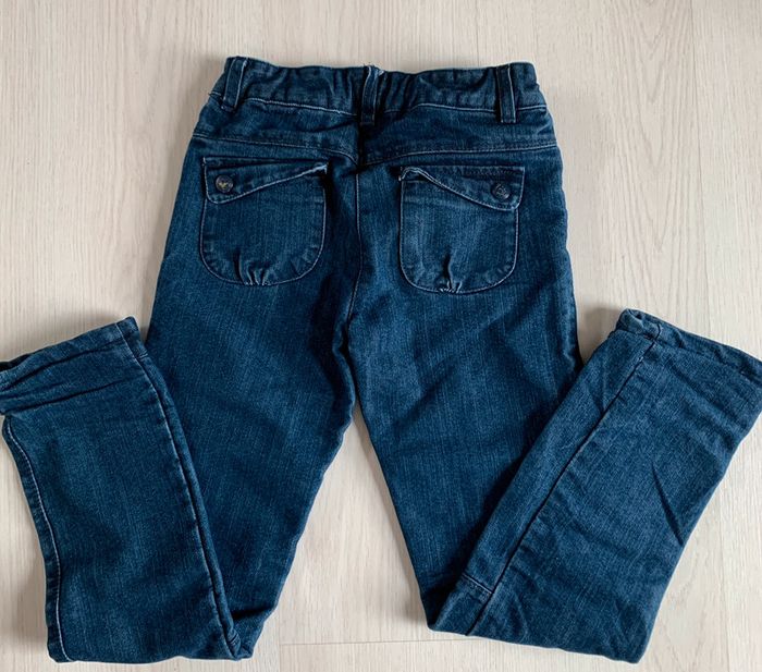 bon état général il y a juste une petite tache de peinture sur le côté de la jambe droite qui n’est pas partie au lavage.