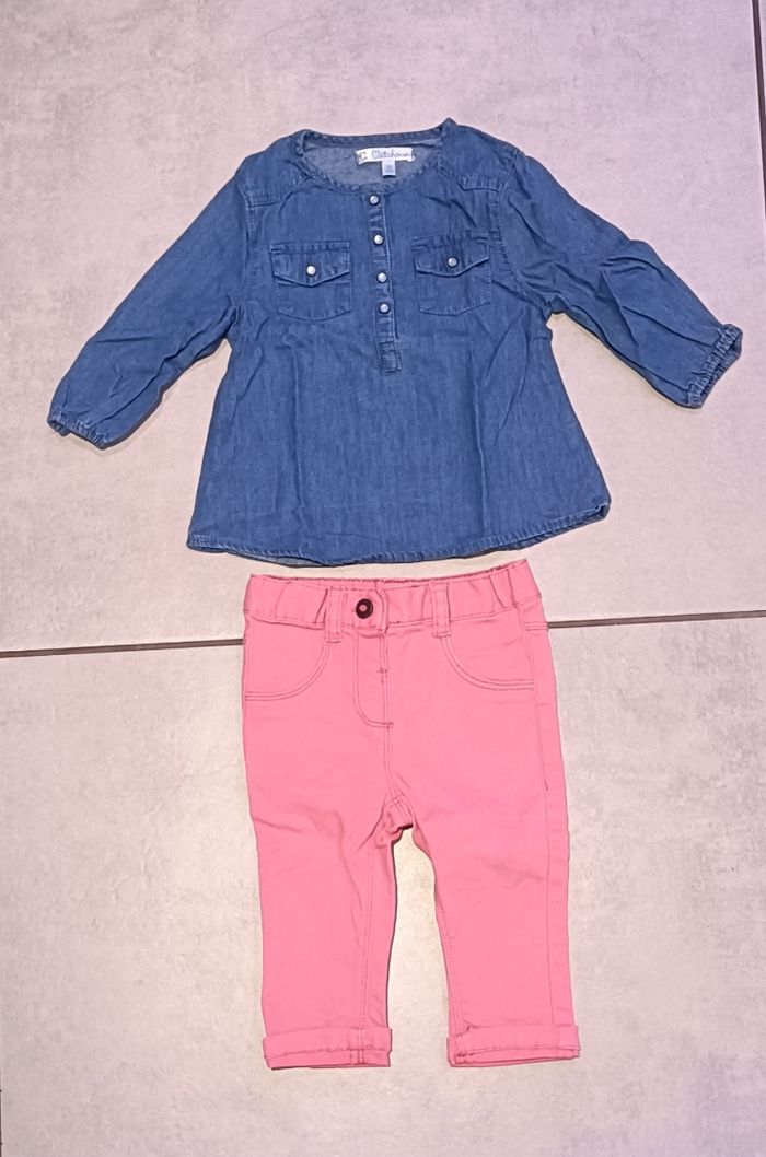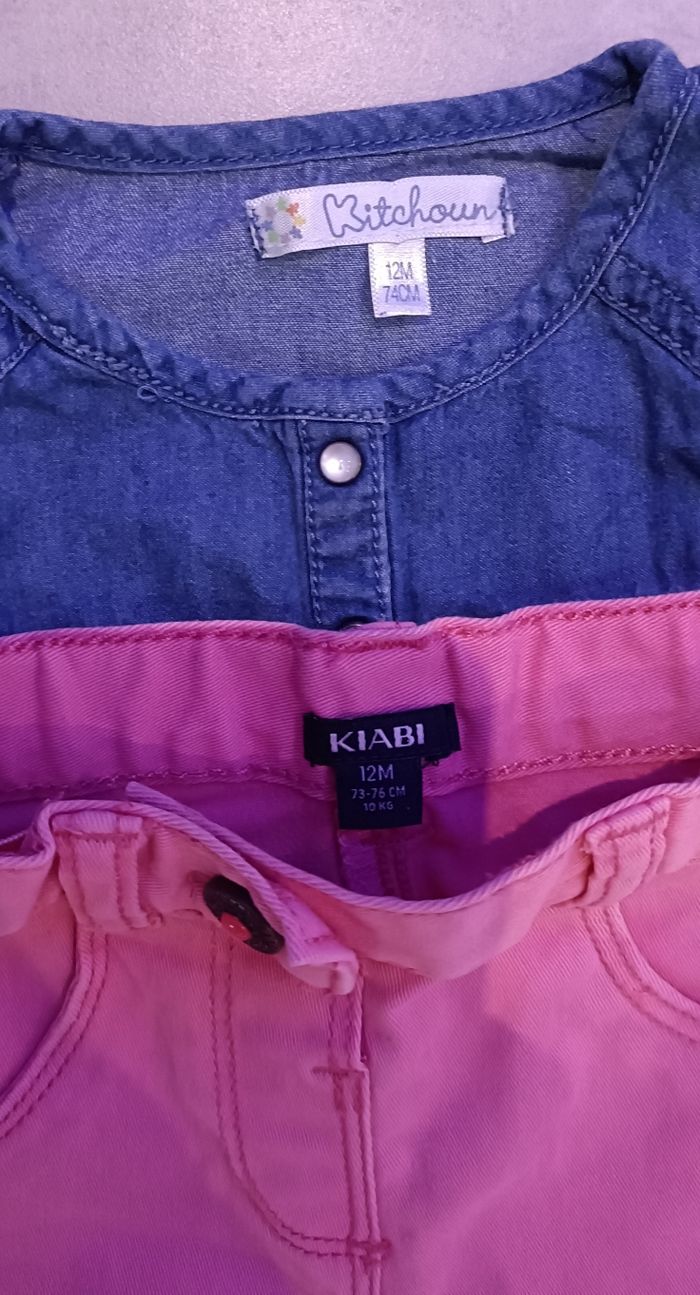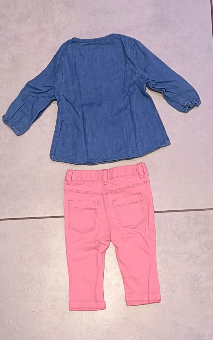 Ensemble haut jeans manches longues avec pantalon. Différentes marques. Taille 12 mois