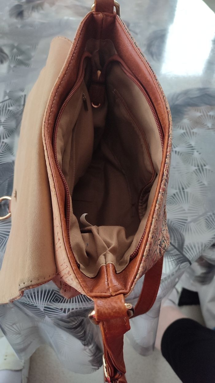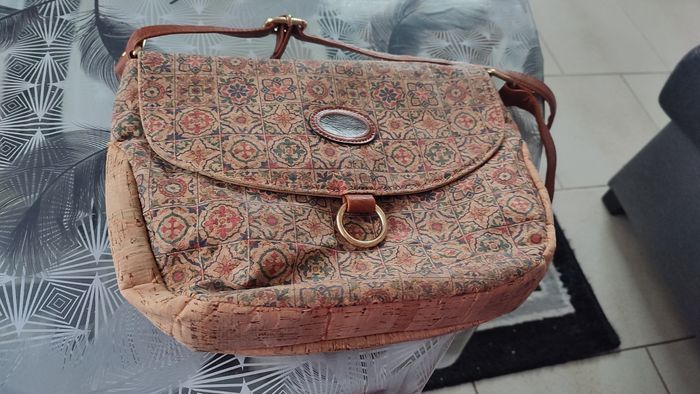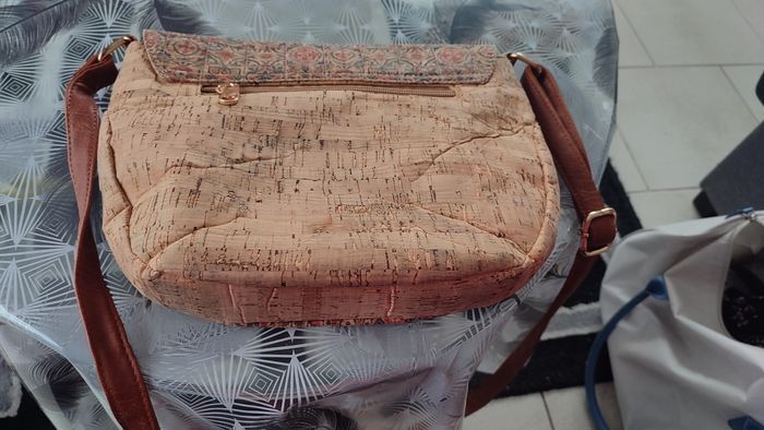 Sac a main en liège synthétique avec une poche derrière avec fermeture et une a l'intérieur avec fermeture et 2 petites poches