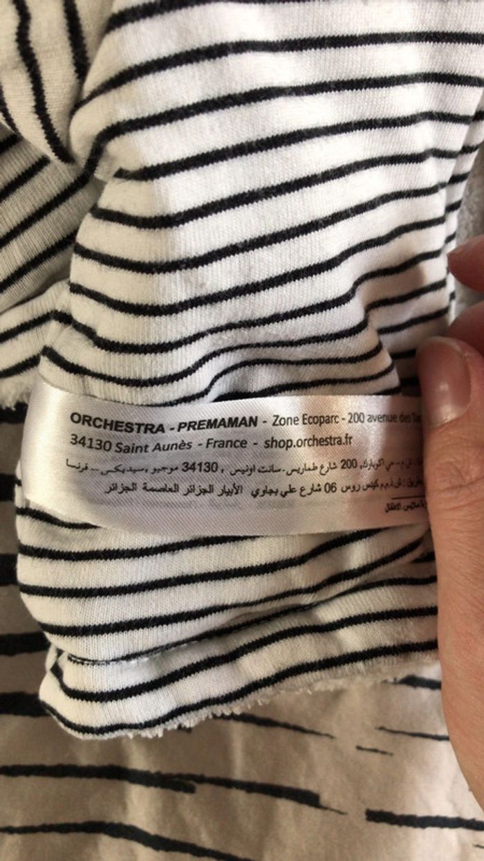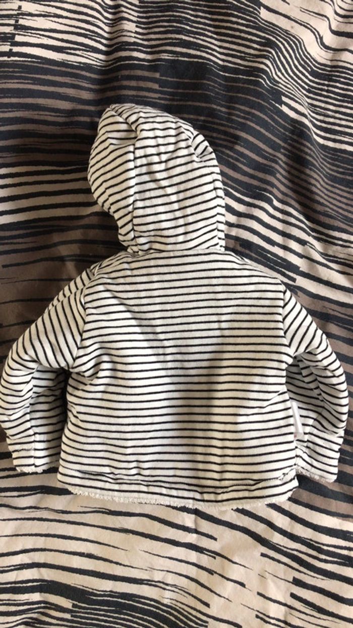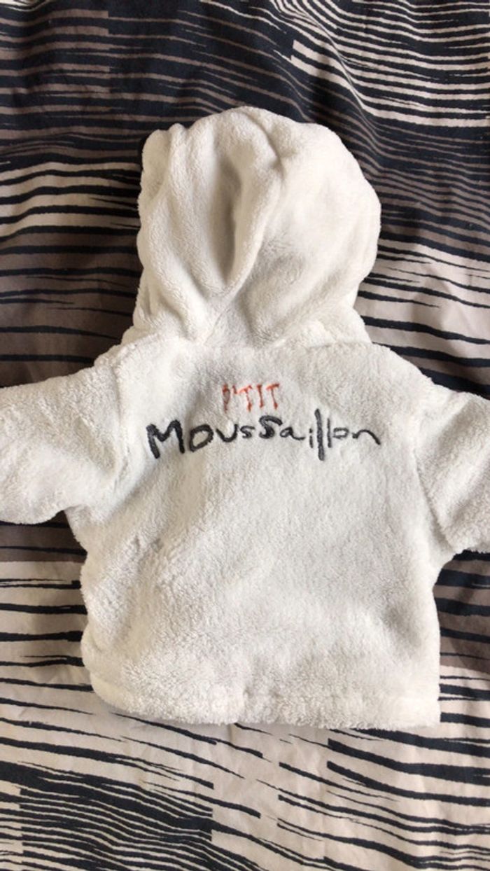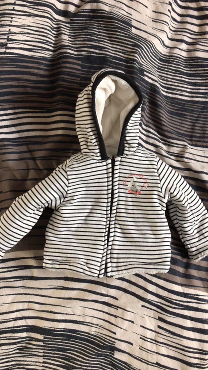 un côté blanc/beige un côté blanc rayé bleu marine bien chaud 1 mois