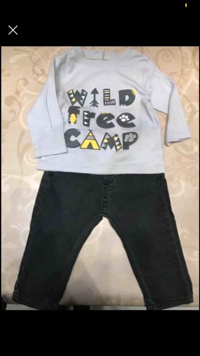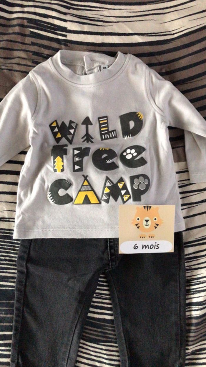 composé d’un haut manches longue gris et d un pantalon coloris noir style délavé très confortable taille 6 mois