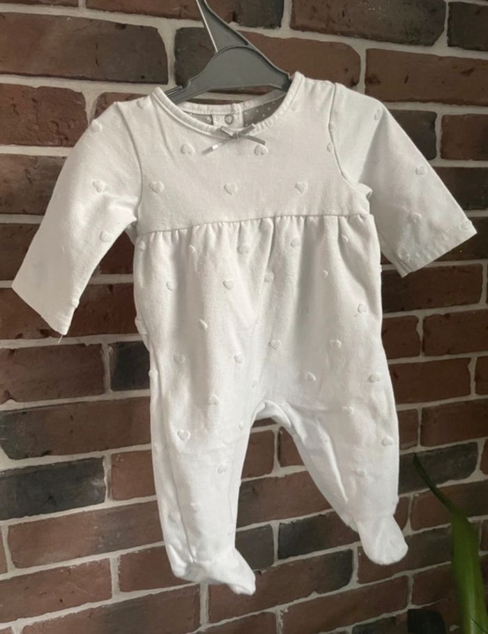 Pyjama 1 mois blanc avec petit cœur. A été porté 1 fois.