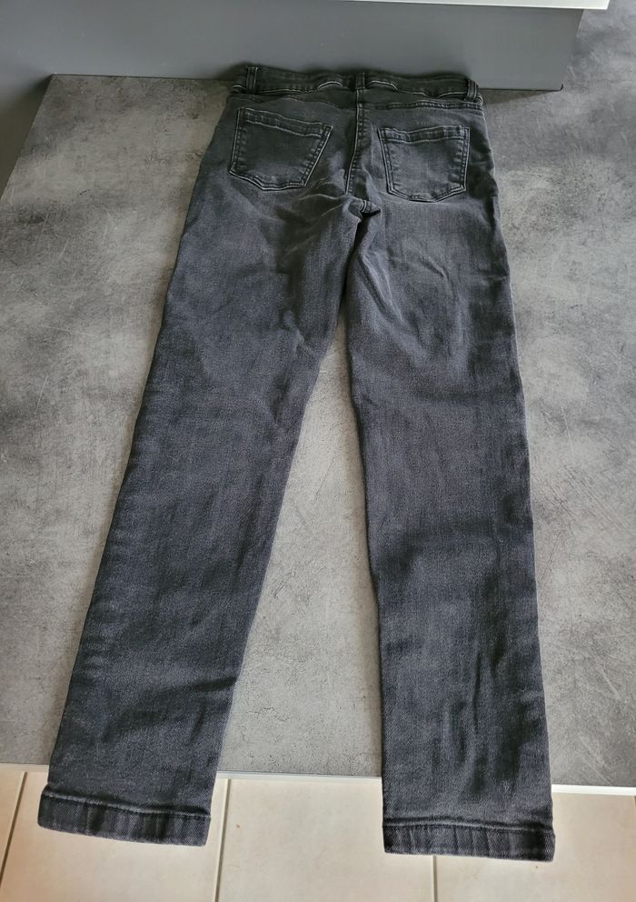 Jean en coton stretch gris foncé, taille ajustable liseret noir sur les côtés.