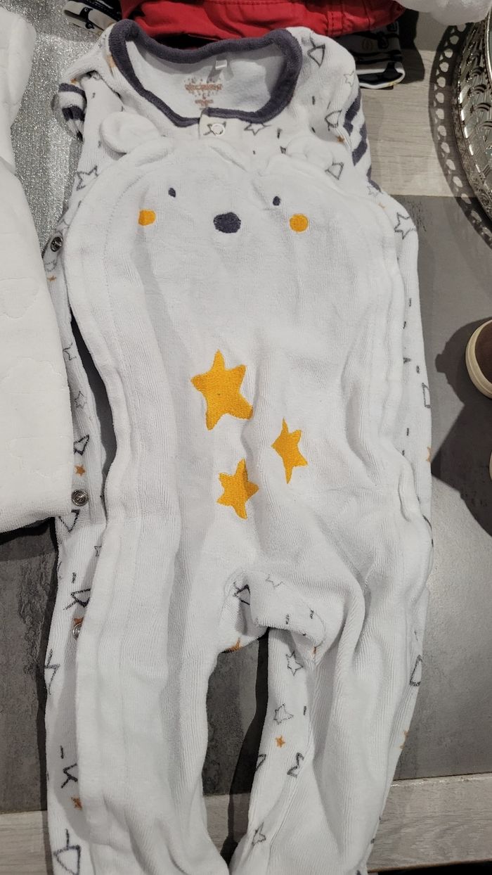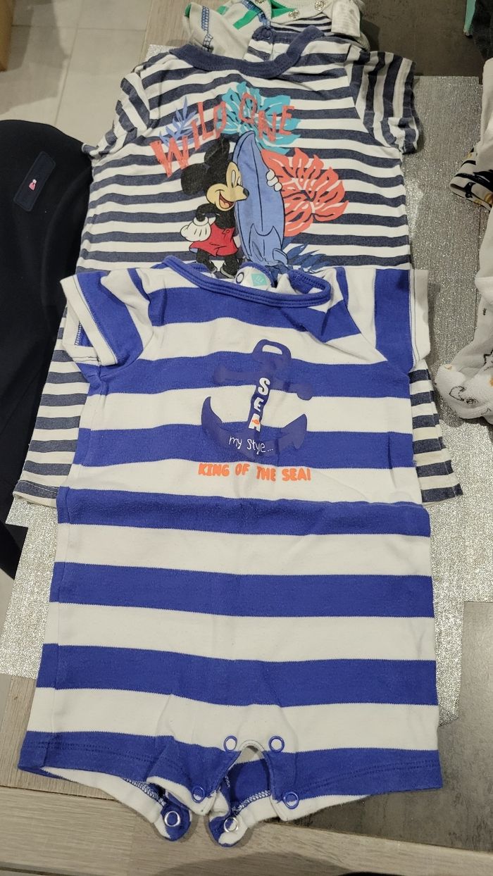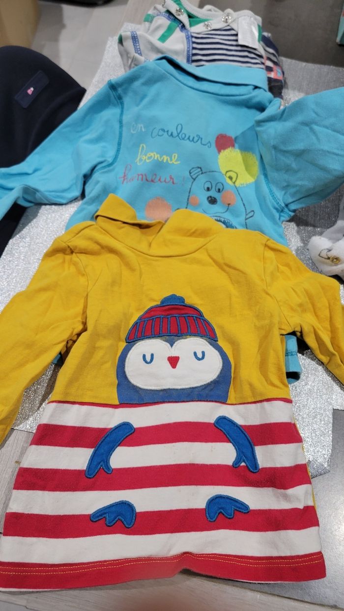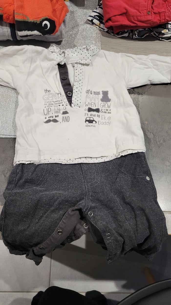 Lot vêtements en 9 mois, garçon. En bon état, par contre nécessite un lavage car était stocké au garage. Dans le lot il y a : 1 bas maillot de bain 1 pantalon hiver 2 sous pull col roulé 3 combishort 2 pyjamas 2 gilets zippés 1 combipantalon 1 combipolote