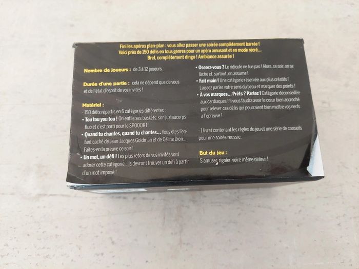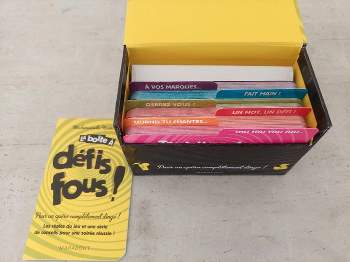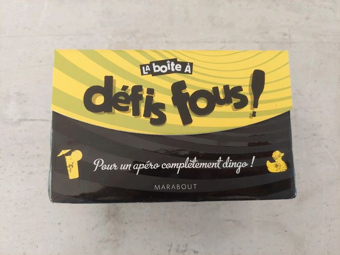 📖 Jeu pour apéro 🍹🍻. Servi seulement 1 fois. Les cartes sont en excellent état, seule la boîte est légèrement abîmée (voir dernière photo). 150 cartes défis réparties en 6 catégories + 1 livret avec les règles du jeu. 🏷 Marabout 🛍 D'autres articles dans mon dressing avec #jeuaurelilou34 📉💰 Réductions activées