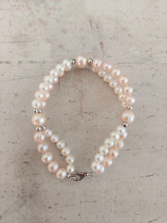Bracelet en perles blanches et rose poudré. Jamais porté #femmeaurelilou34 #bijouaurelilou34