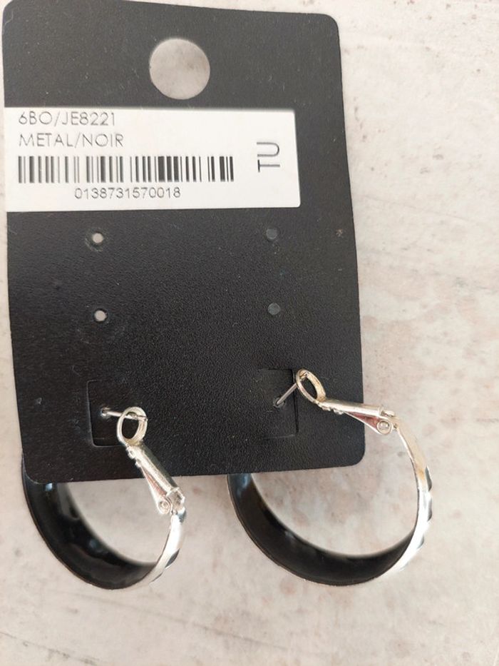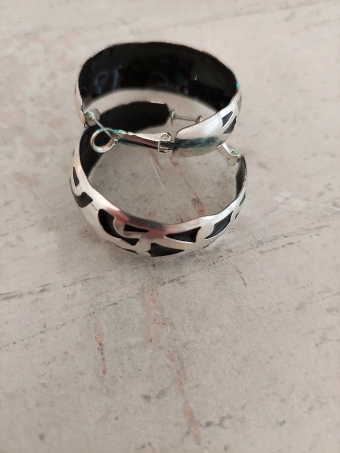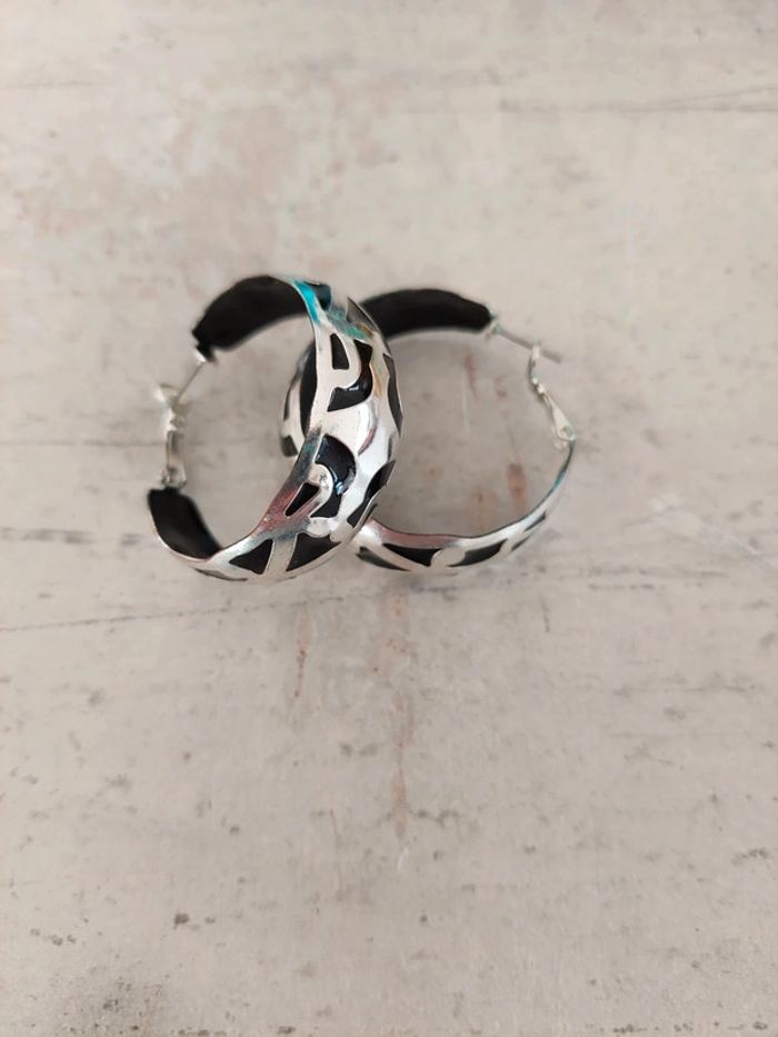 Lot de 2 paires de boucles d'oreilles argentées et noires. Prix d'une seule paire : 4,95€, vendues 4€ les 2 paires. Mim #femmeaurelilou34 #bijouaurelilou34