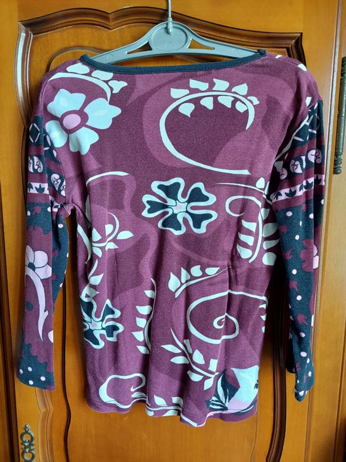 T-shirt manches 3/4, motifs 🌸🌿. Taille 2 #femmeaurelilou34