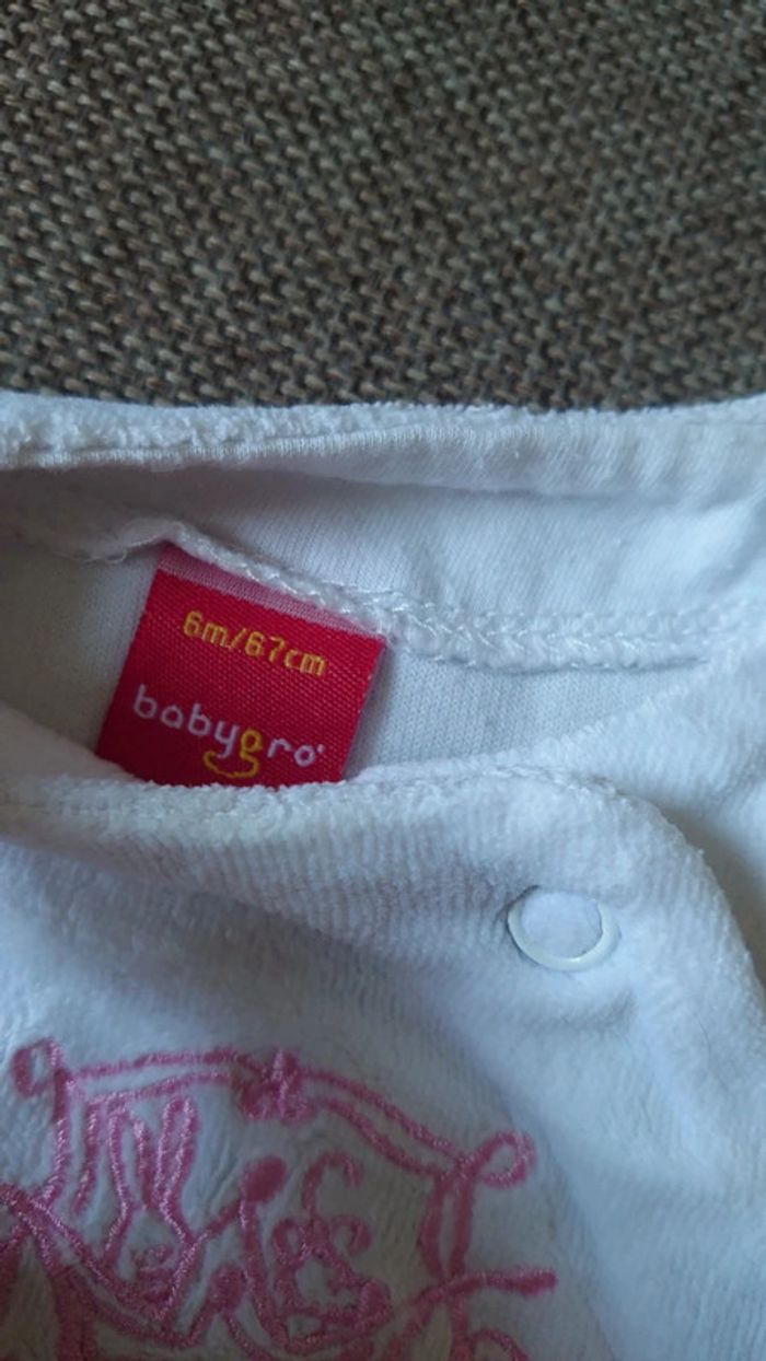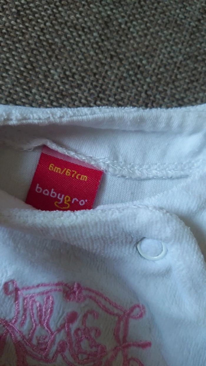 Pyjama velours rose et blanc Babygro. Taille 6 mois. Excellent état.