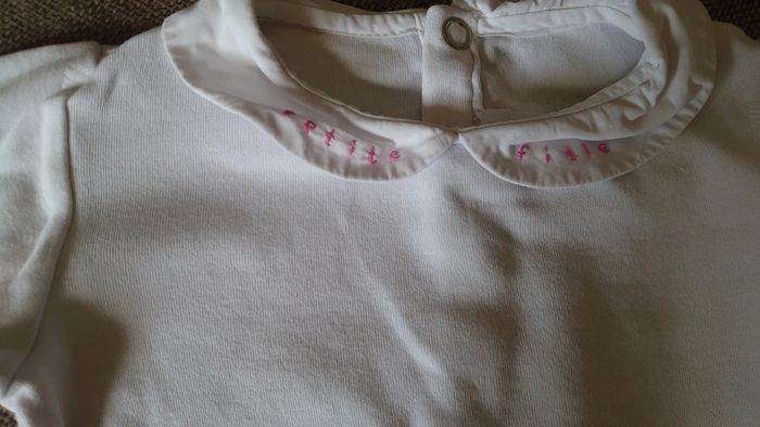 Body à col claudine brodé "Petite fille" de Jacadi. Taille 12 mois. Très bon état.