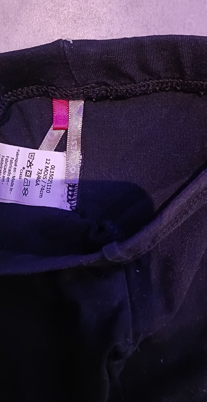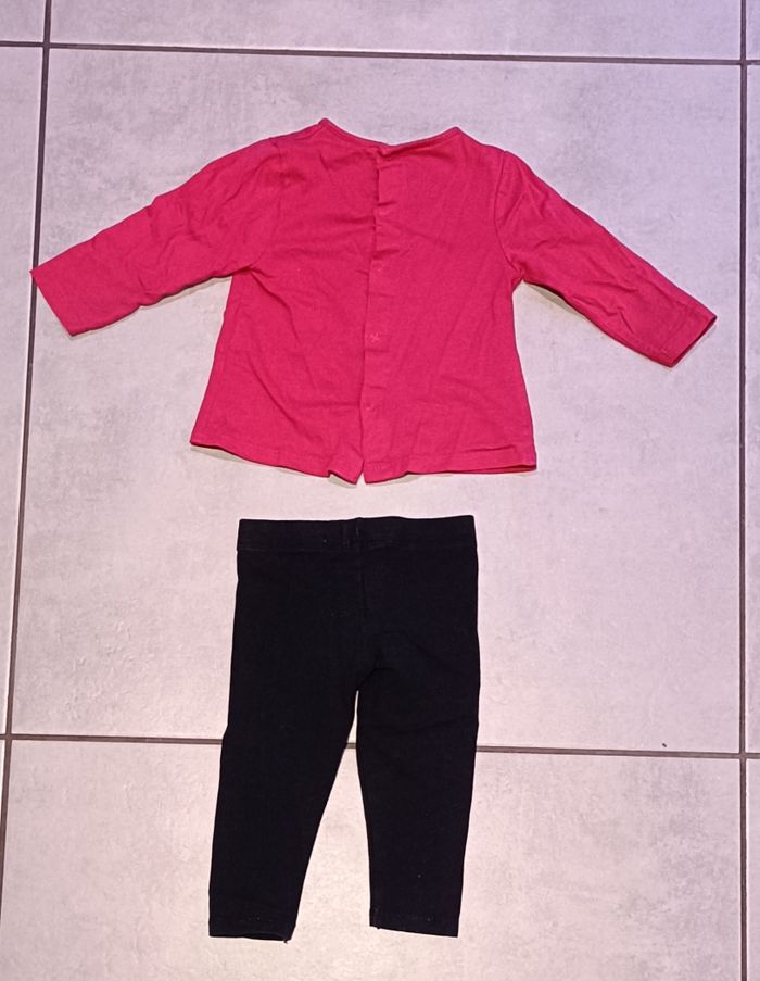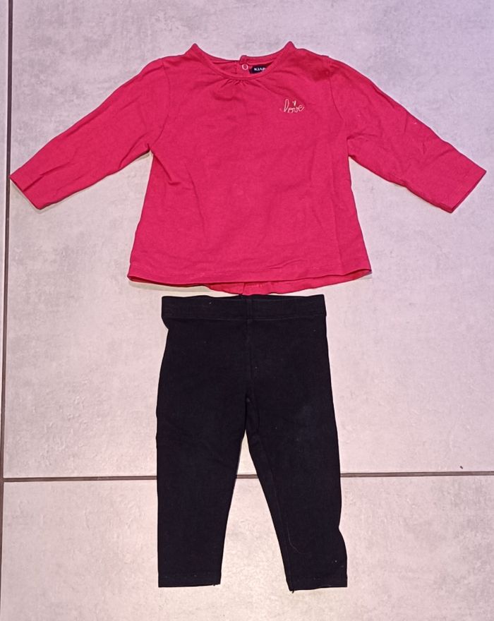 Ensemble haut manches longues avec fermeture par pression à l'arrière et legging de différentes marques. Taille 12 mois