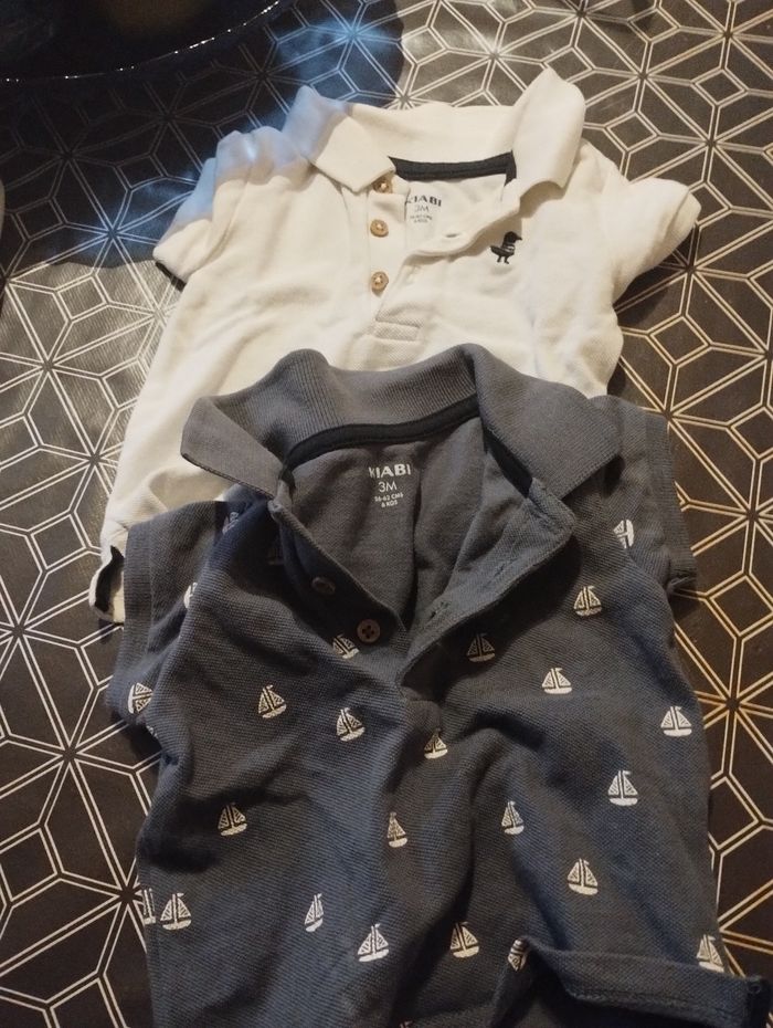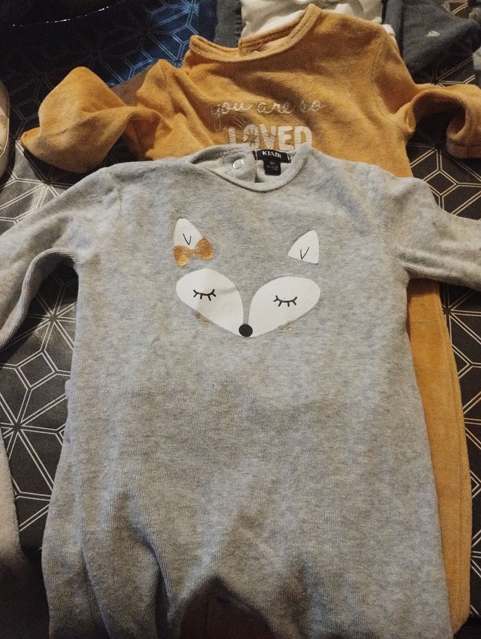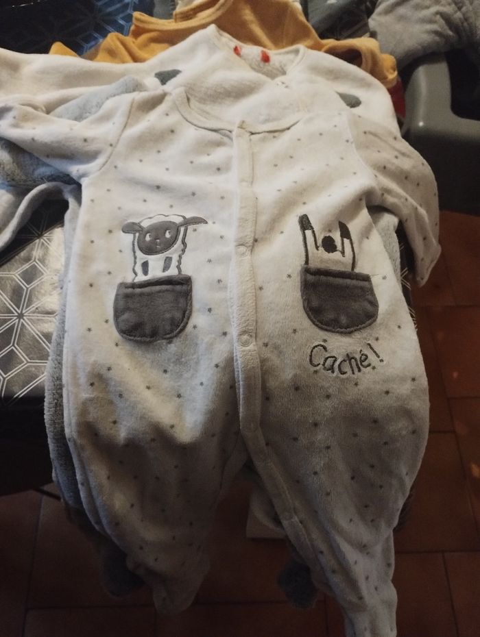 Lot de vêtements 3 mois différentes marques.tout n'est pas sur les photos (manque sur photo des pantalons, pyjama,pull) certains très bon état et d'autres bon état.sa représente environ 2 gros sac de courses.