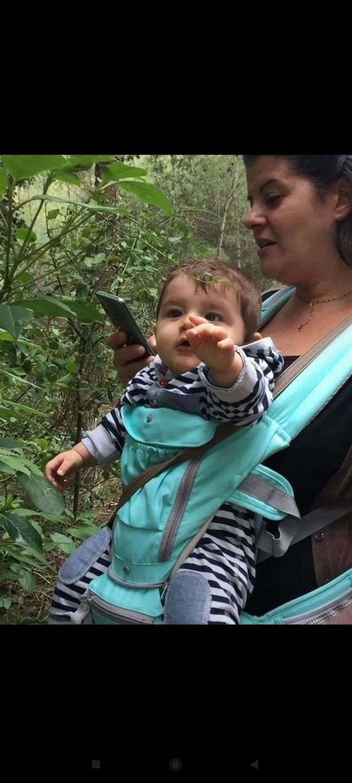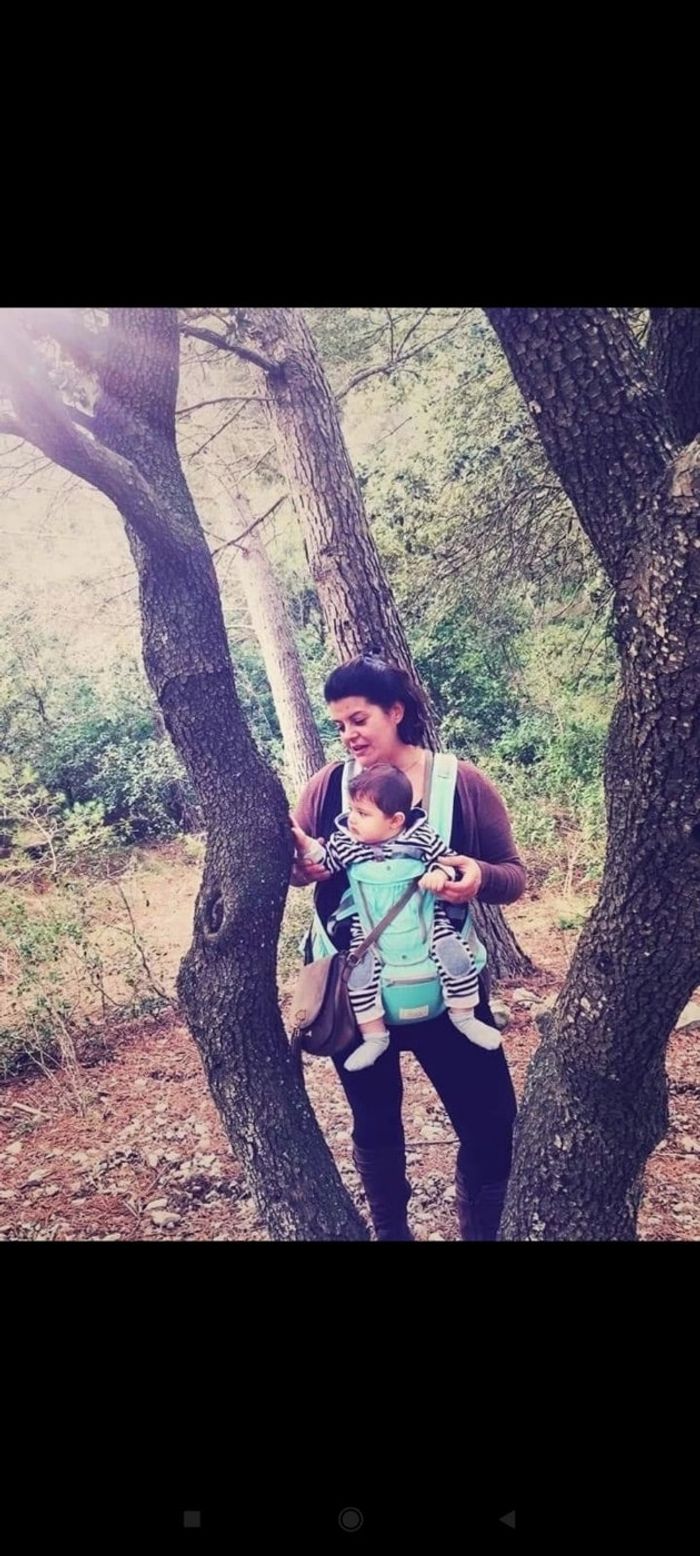 Porte bébé évolutif en très bon état. Dès la naissance. Lavable. Très pratique pour les balades ou les randonnées avec bébé. Confortable pour bébé mais aussi pour les parents. Je l'ai acheté soldé à 70€. Il est actuellement soldé à 60€. 2 photos de mon petit porté avec.