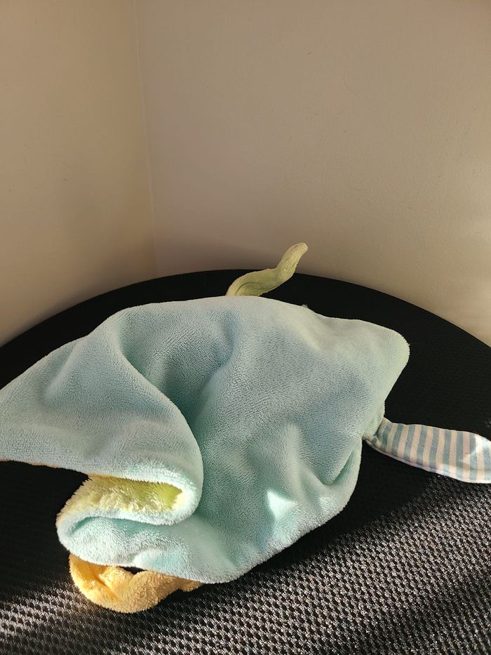 DOUDOU PLAT CHAT BLEU VERT BLANC LES PETITS AMIS BEBEREVE 108