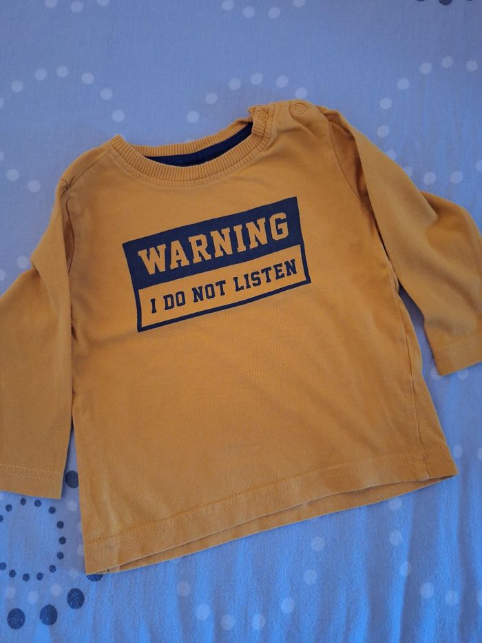 GARÇON 12 MOIS N°512 maillot moutarde / bleu Long manches Pression épaule 100% coton Taille 12 mois Zeeman 1€ #kelly_garçon12mois