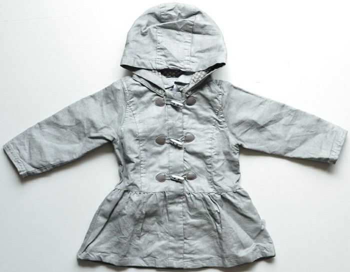 Trench fille Obaidi Taille 18 mois Couleur gris / argent Boutons et fermeture éclair Capuche amovible