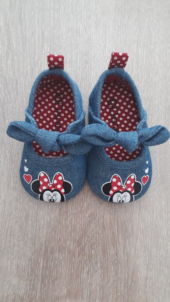 Chaussure minnie Imitation jean Mise une fois mais erreur dans la poiture . Pointure 15/16