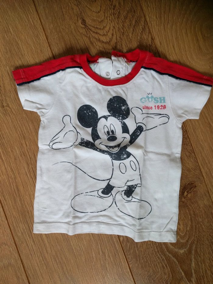 T-shirt manches courtes blanc avec une grosse bande rouge et entouré d'une rayure bleu marine Se ferme avec des pressions à l'arrière