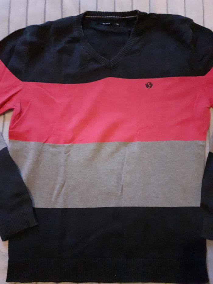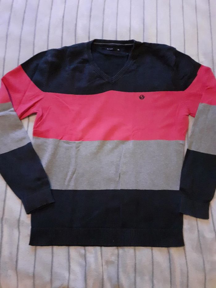 Pull homme fin marine, rose et gris XL - photo numéro 1