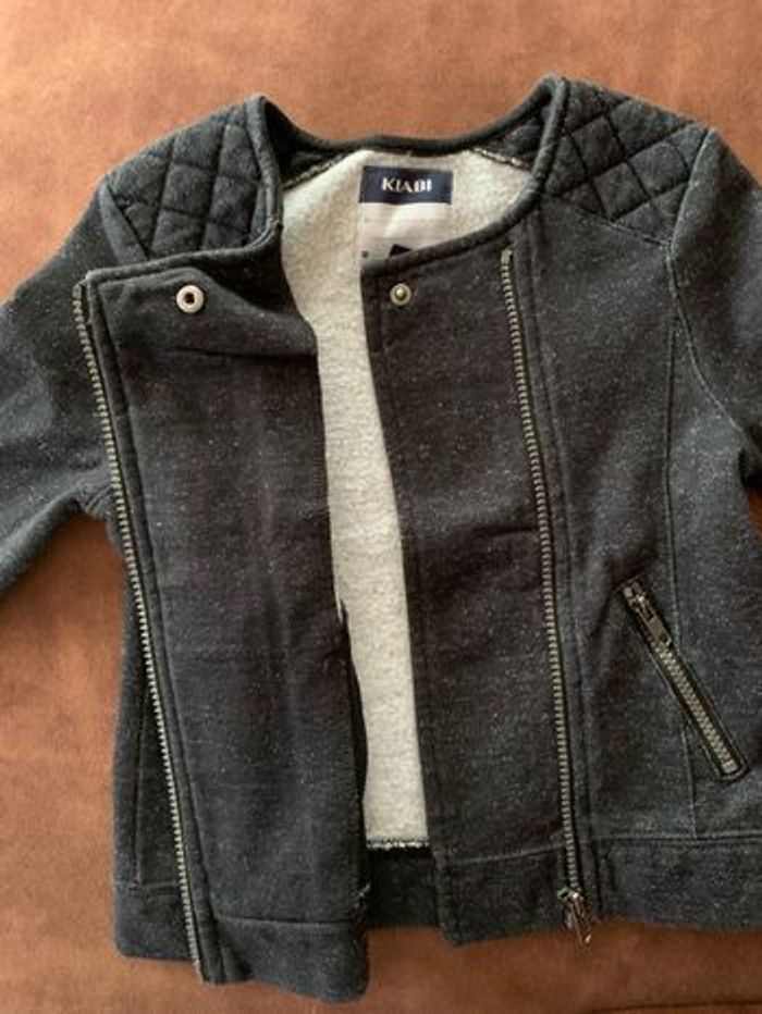 Peu porté Gilet épais ou veste fine Ouverture asymétrique Anthracite à paillettes argentées Jolies finitions
