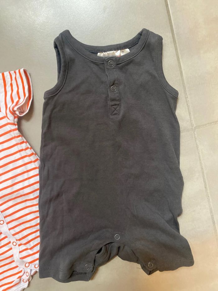 Lot de 2 combi short en très bon état. - 1 Orange à rayures Petit bateau en 6 mois. - 1 Anthracite H&M en 2/4 mois mais taille grand. 📦ENVOIS RAPIDE AVEC MONDIAL RELAIS📦