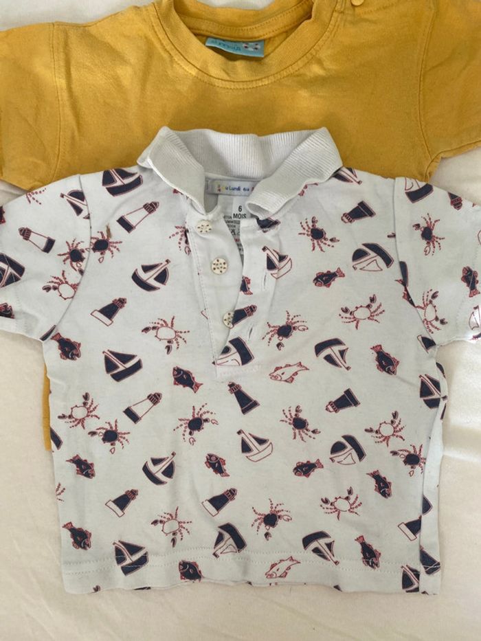 Lot de 3 tee shirt manches courtes en taille 6 mois. bon état. - le jaune marque : du pareil au même 6 mois - le blanc motif marin : du lundi au samedi 6 mois - le blanc basique : kimbaloo 6 mois 📦 ENVOIS RAPIDE AVEC MONDIAL RELAIS 📦