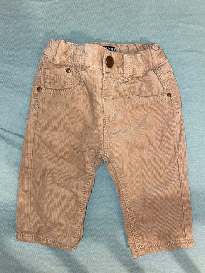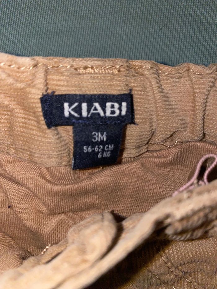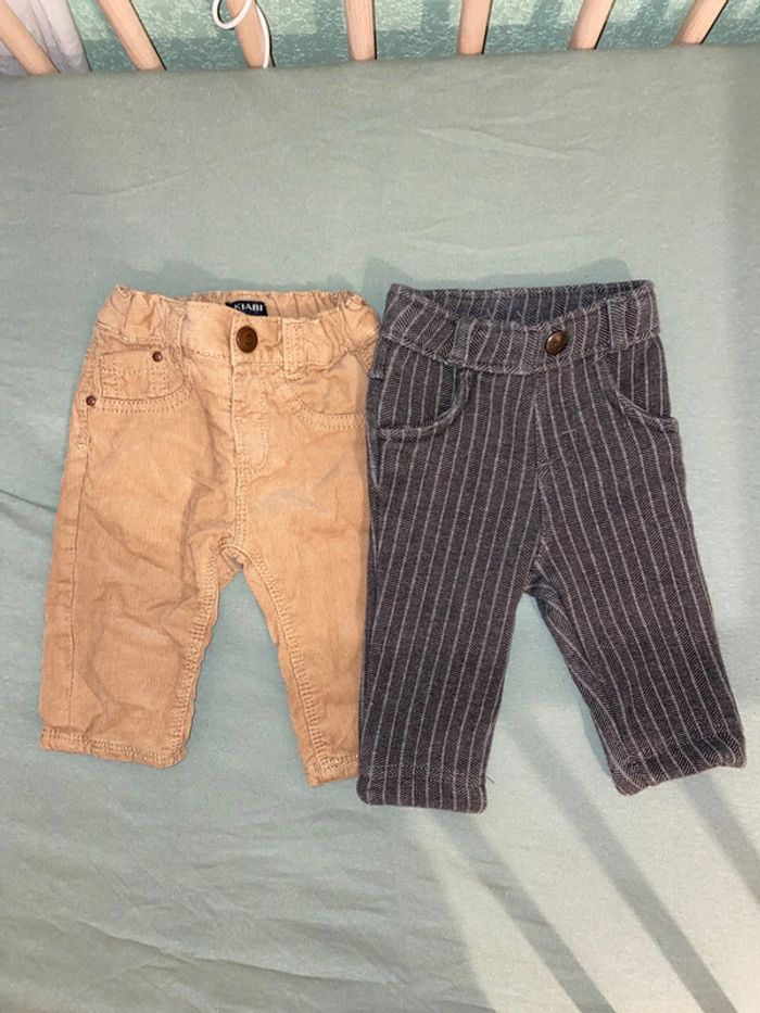 Vend lot 2 pantalons Kiabi taille 3 mois. 1 velours beige/marron et 1 avec rayures blanc doublé « chaud »