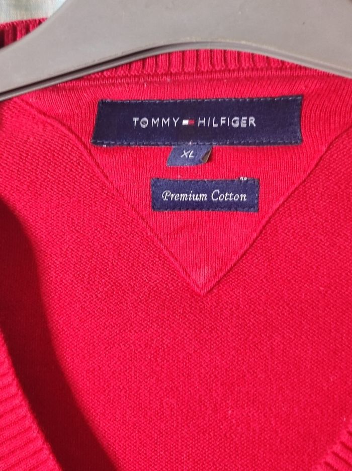 Pull tommy Hilfiger en pure coton 100% pour un look cusual chic. Présente une coupe standard , poignets et ourlets côtelés. En partenariat avec la better cotton initiative. Col en V En tres bon état