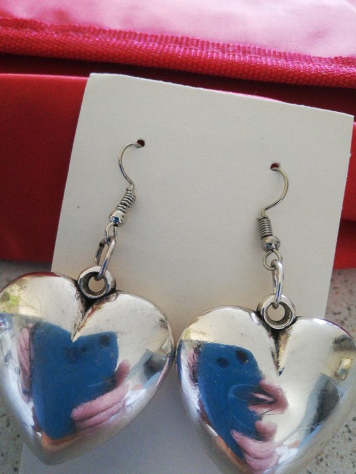 Boucles d oreilles cœur argenté - photo numéro 3