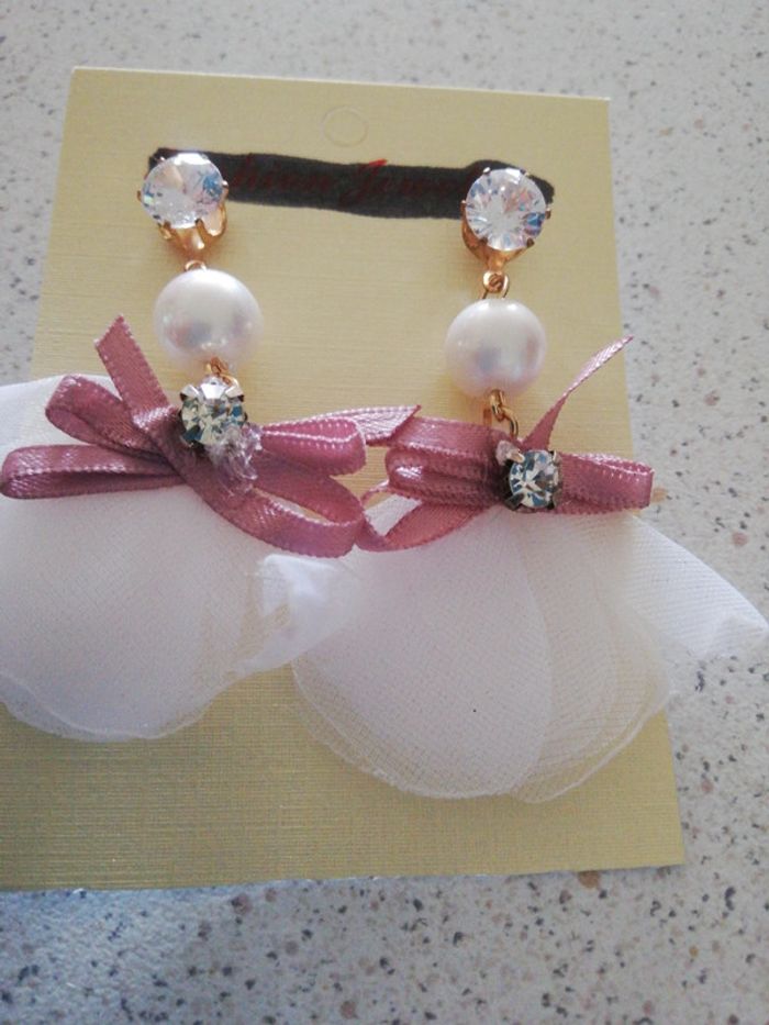Boucles d oreilles rose et blanches - photo numéro 1