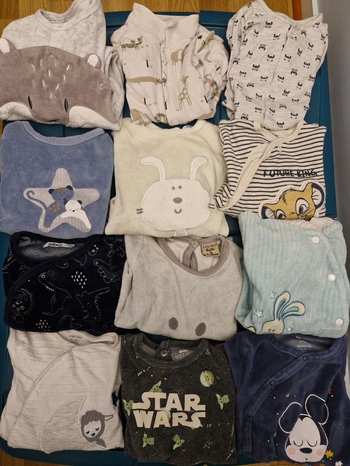 12 pyjamas 13 bodys manches longues 5 pantalon 1 salopette 1 pantalon à bretelles
